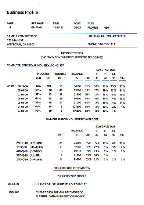 payment trends. The section headed "Public Record Information" presents